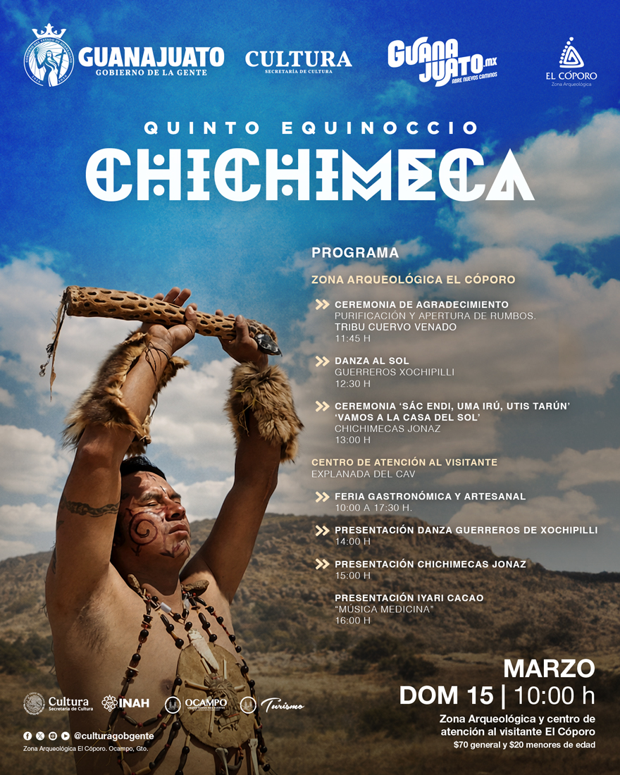 El Quinto Equinoccio Chichimeca Ocampo 2026, será el domingo 15 de marzo en la Zona Arqueológica El Cóporo, ubicada en la comunidad de San José del Torreón.