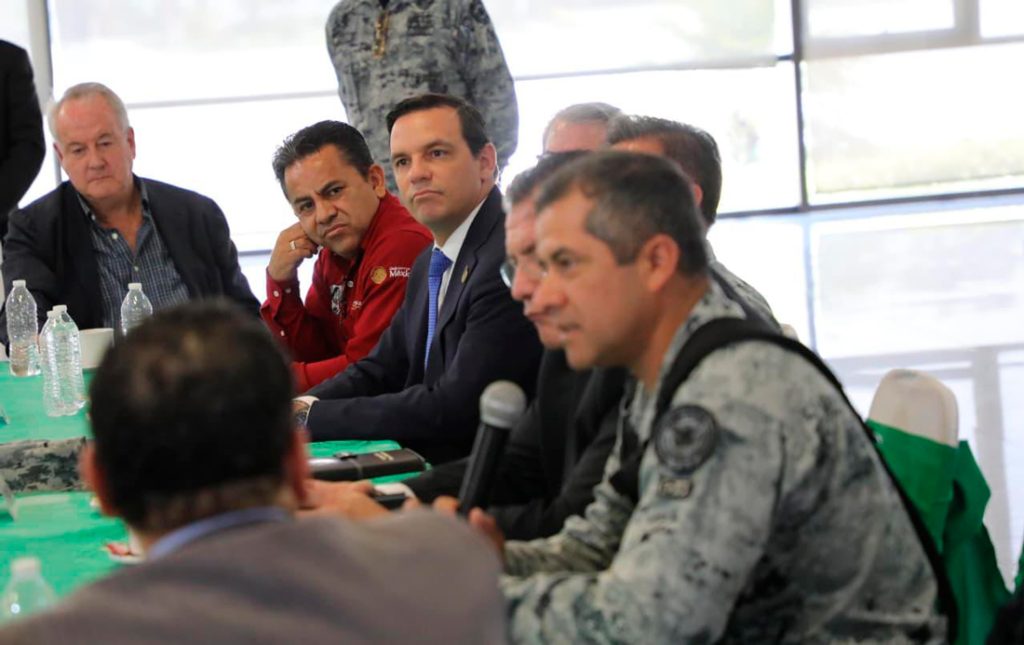 Así lo manifestó el secretario de Gobierno, Jorge Daniel Jiménez Lona, en reunión de trabajo donde participaron el General de Brigada de Guardia Nacional de Estado Mayor, Alfredo Salgado Vargas; el General Homero Edmundo Blanco, coordinador de la Guardia Nacional en Guanajuato, y el delegado de la Fiscalía General de la República, Juan Francisco Vera Ayala, además de Efraín Palafox, representante de la Secretaria de Infraestructura, Comunicaciones y Transportes (SICT), así como el Comisario Jefe de la Policía Estatal de Caminos, Víctor Manuel Osornio Álvarez adscrito a la Secretaria de Seguridad y Paz, quienes atendieron cada una de las peticiones realizadas por los asistentes.